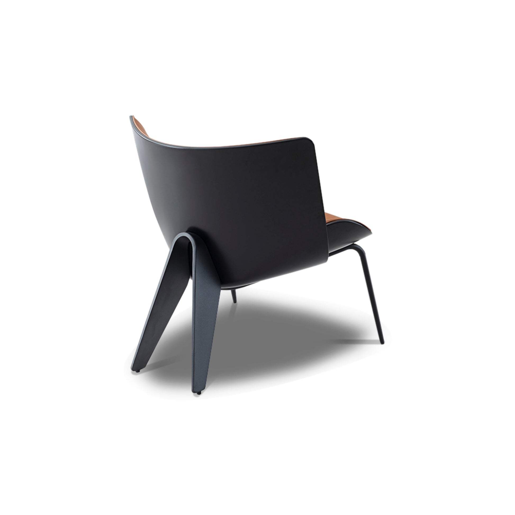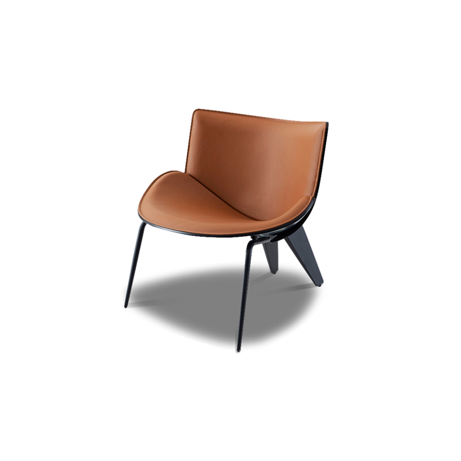 Irreverente así es Diversa, con una base entre metal y pvc que se une en una pieza escultórica a las patas que elevan el asiento de cuero.