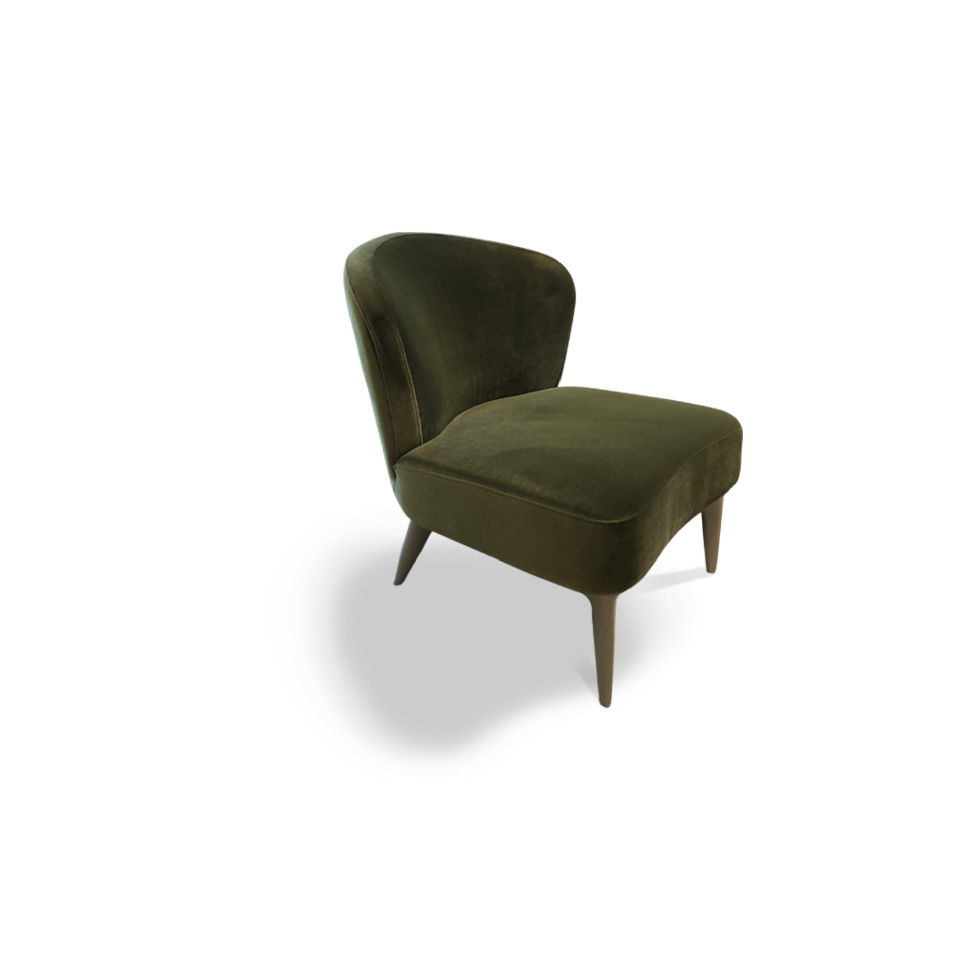 Poltrona en color verde, este color vibrante en una tela satinada aporta elegancia y vida a los espacios.