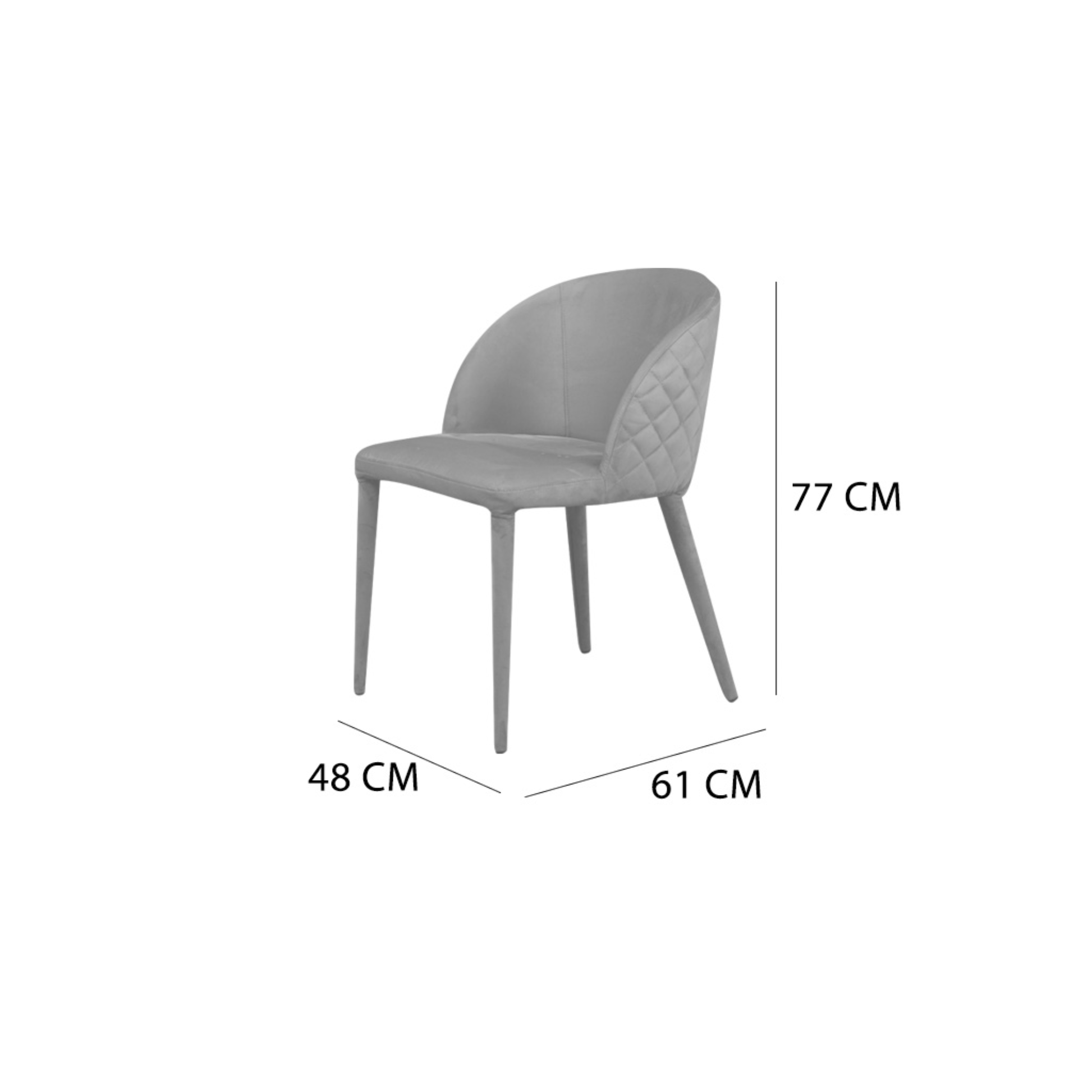 Silla con espaldar en arco y capitoneado en la parte de atrás.